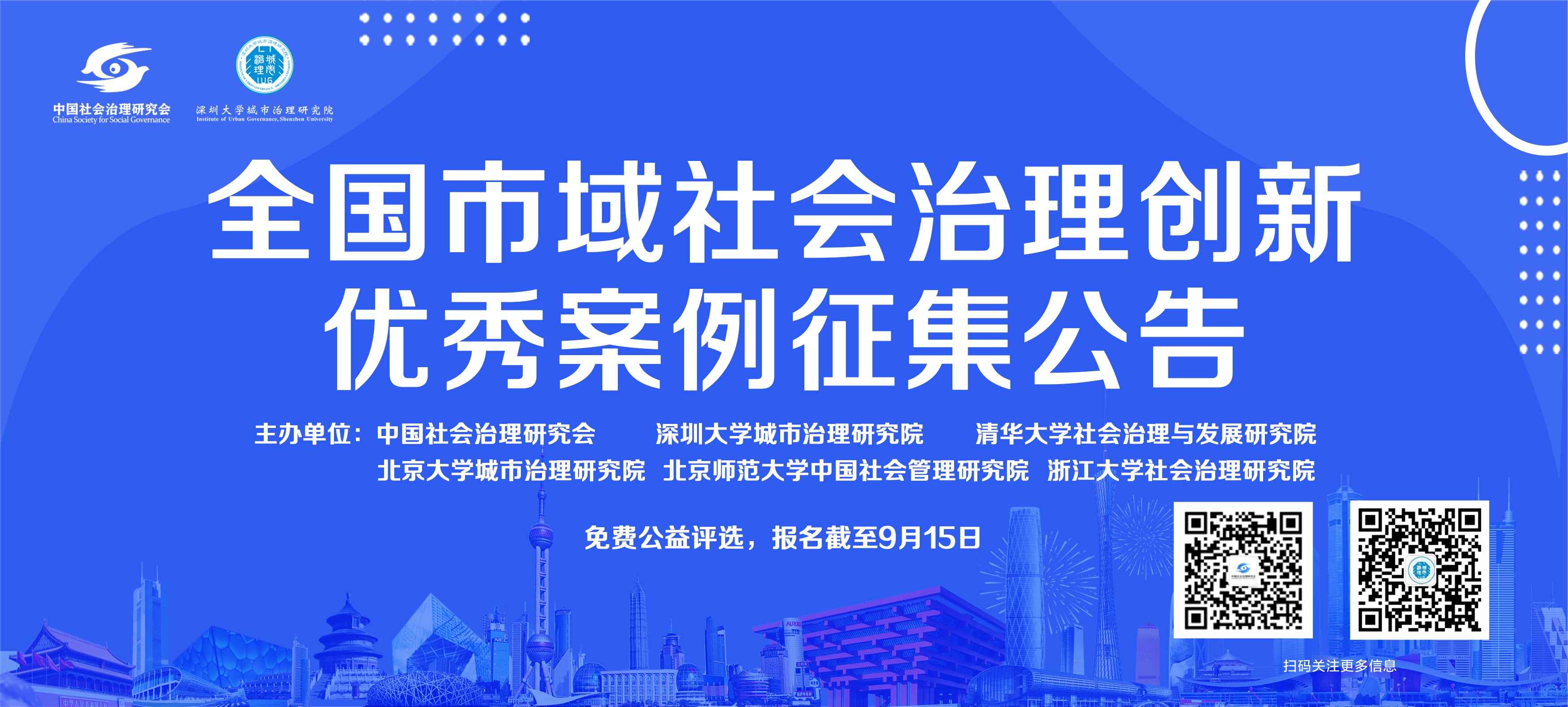 1. 案例征集:8月5日至9月15日。通过中国社会治理研究会的网站、微信公众号等媒介,发布“全国市域社会治理创新案例”征集评选公告、参与申报情况。