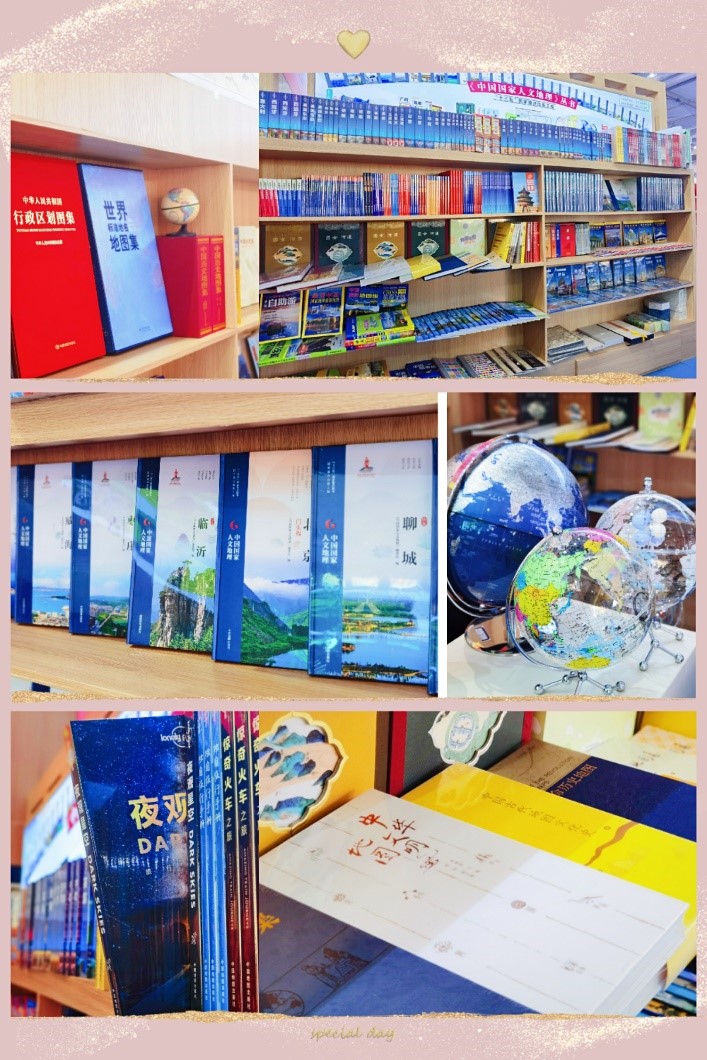 中国国际文化产业博览会暨第十八届北京国际图书节,是本届服贸会文化服务专题之一。在服贸会期间,北京国际图书节特别设置了北京特色书店街,集中展示北京城市文化地标的新风采。中国地图出版集团地图主题书店作为十四家北京市实体书店代表之一亮相其中,以鲜明的地图特色和丰富的地图文化产品,吸引了广大民众的关注。中图集团精选了《中华人民共和国行政区划图集》、《粤港澳大湾区港航图集》、《地图上的绿水青山》、“中国国家人文地理”丛书等一系列反映新中国成立70年以来,尤其是改革开放40年来不同时期、不同领域发展变迁的重点出版物,以及实用参考图、历史文化类图书、Lonely Planet旅行系列图书和地球仪、地图文创品等,共计200多个品种与读者见面。