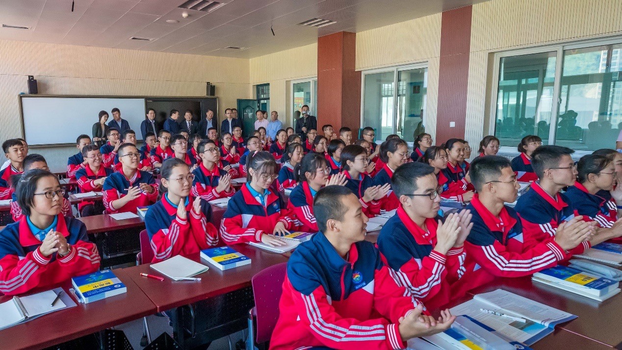 参加签约仪式的领导与专家观摩法政集团援建延安中学的卫星课堂