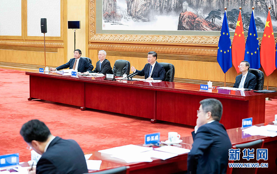 新华社北京9月14日电 国家主席习近平14日晚在北京同欧盟轮值主席国德国总理默克尔、欧洲理事会主席米歇尔、欧盟委员会主席冯德莱恩共同举行会晤,会晤以视频方式举行。中德欧领导人就中欧关系深入交换意见,为下阶段中欧关系规划方向,确定重点领域,一致同意加强沟通协调合作,确保今后中欧之间一系列重大政治议程取得成功,深化互信,实现互利共赢,坚持维护多边主义,共同应对全球性挑战,推动中欧关系迈向更高水平。中欧双方宣布签署《中欧地理标志协定》,确认加快中欧投资协定谈判,实现年内完成谈判的目标。中欧决定建立环境与气候高层对话和数字领域高层对话,打造中欧绿色合作伙伴、数字合作伙伴关系。
