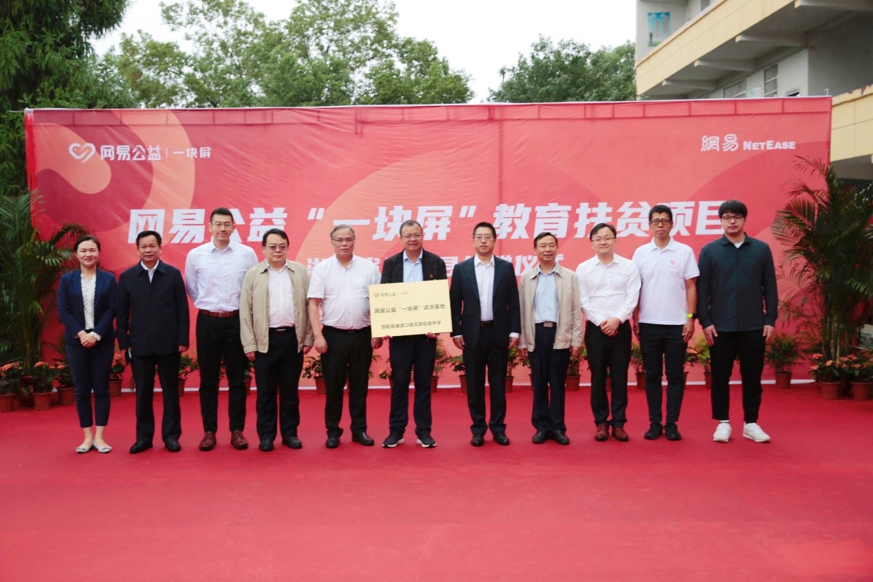 人民政协网湖南9月24日电(记者 修菁)9月22日,网易公益“一块屏”教育扶贫试点基地捐赠仪式在湖南省邵阳县玉田中学举行。湖南省政协副主席张灼华、湖南省委网信办副主任屈贵全、网易集团党委书记周骏、网易有道副总裁金磊、网易传媒副总编辑肖雄、湖南省邵阳市和邵阳县领导,以及玉田中学校领导等出席了捐赠仪式。
