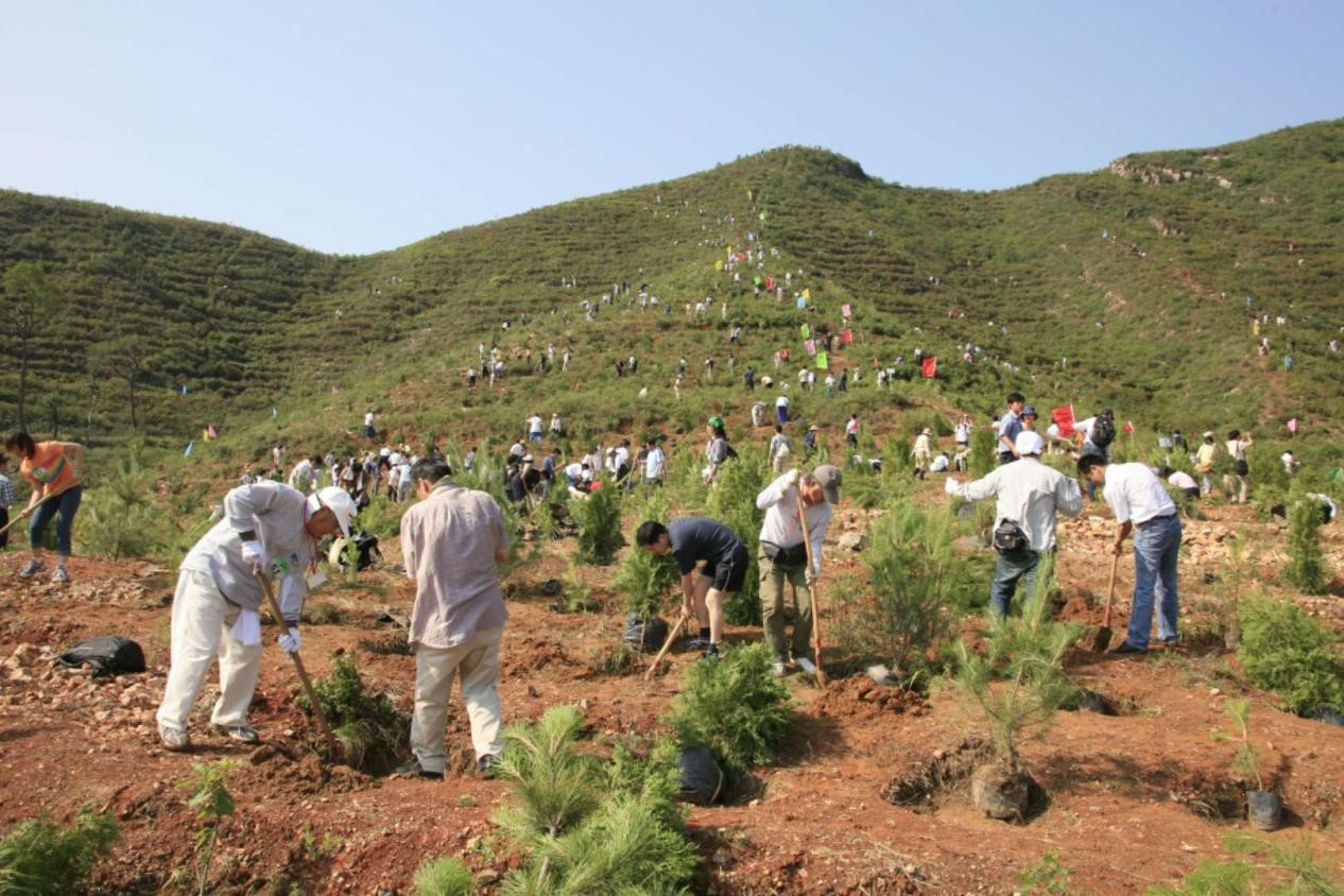 北京市社会各界参加京津工程建设。北京市治沙办提供