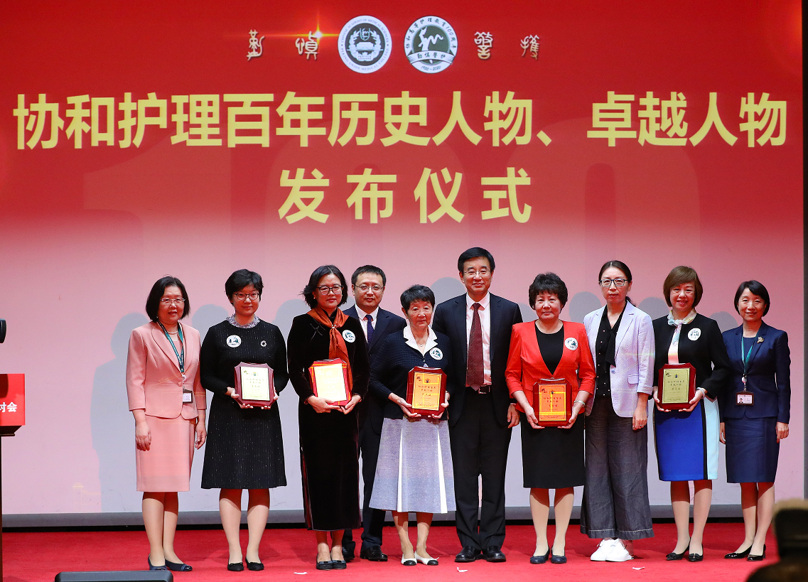 据了解,百年来,协和护理英杰迭出,曾培养了7位南丁格尔奖章获得者及大批领军人才。为致敬护理先贤,大会特发布护理百年历史人物、卓越人物,林斯馨、周美玉、徐蔼诸、陈琦、佘韫珠、廖月琴、王懿、江尊群、陈坤惕、卢惠清、袁艺菊、林雨、梅祖懿、沈长慧、张惠兰、黄伍琼、吕式瑗、李懿秀、陈淑坚、甘兰君、杨英华、李象棠、张德萱、郭淑如、李学增、袁展文、黄人健等27位入选“协和护理百年历史人物”,聂毓禅、王琇瑛、陈路得、林菊英、黎秀芳、刘淑媛、吴欣娟、李红、黄爱廉、潘孟昭等10位当选“协和护理百年卓越人物”。王辰院校长、吴沛新书记、国家卫生健康委医政医管局焦雅辉监察专员为出席会议的卓越人物代表颁发了纪念牌。