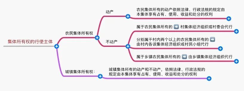 集体所有权包括两个类型,农民集体所有权与城镇集体所有权,二者行使权利的代表存在差异。