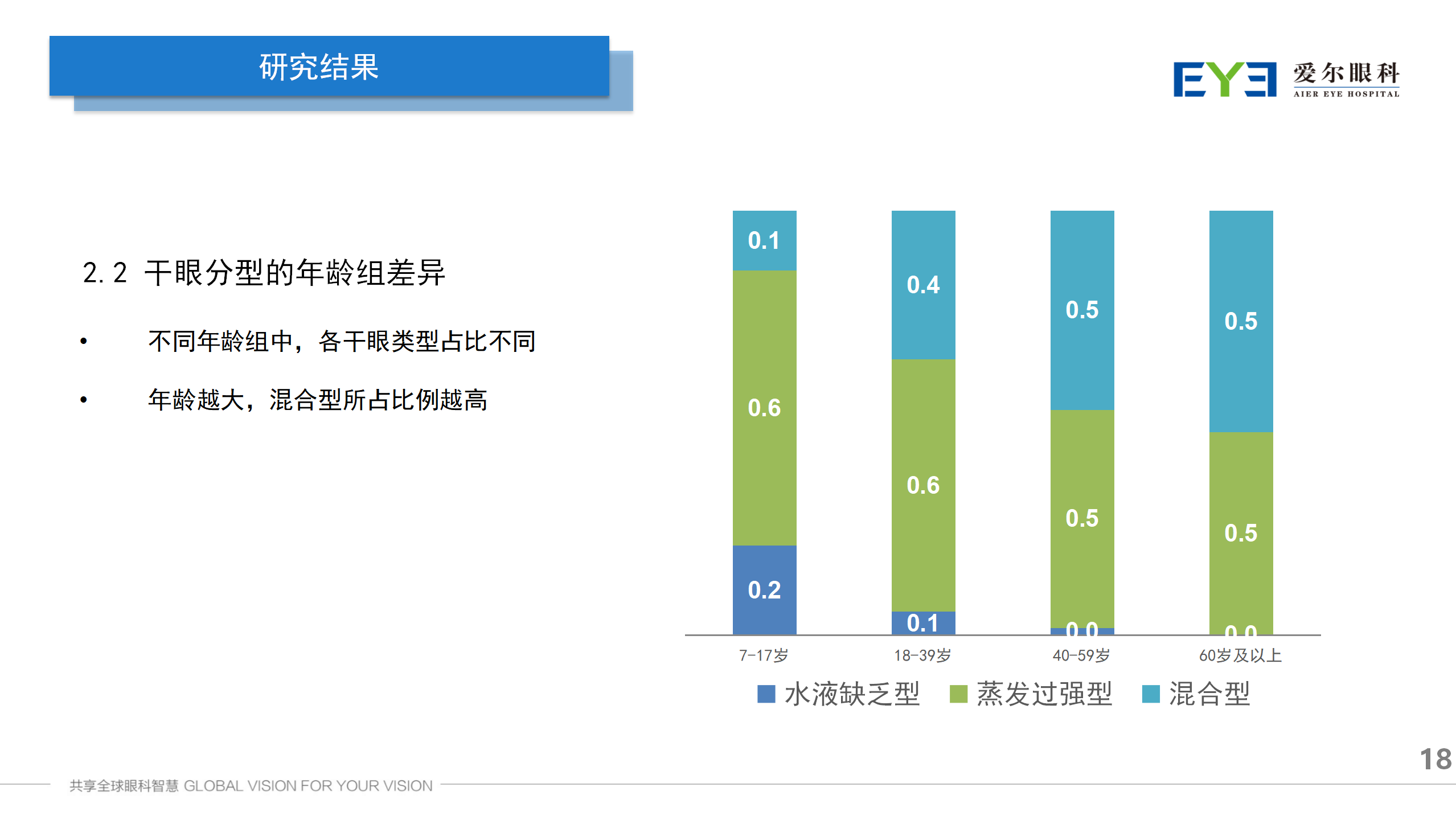 从年龄来看,60岁以上干眼患者中,混合型干眼占比高