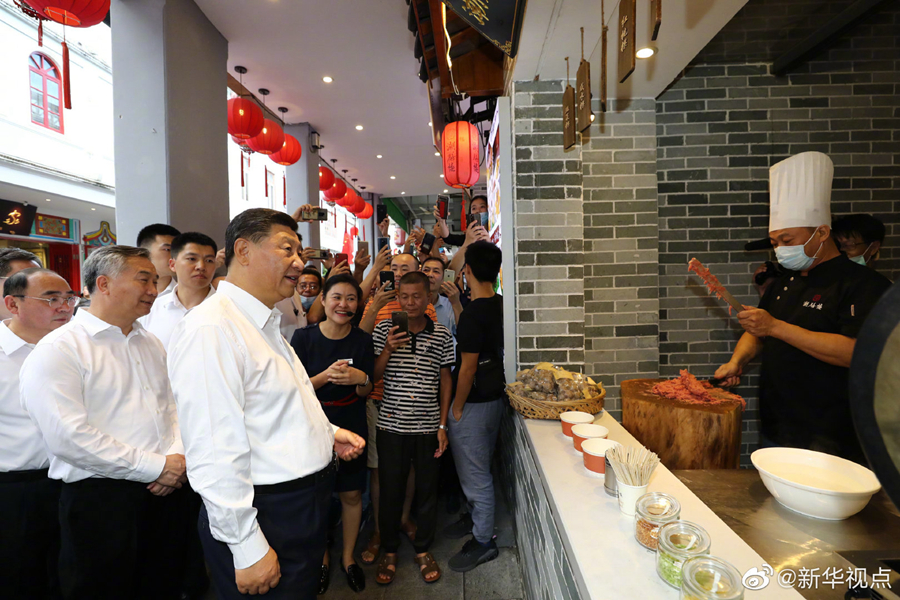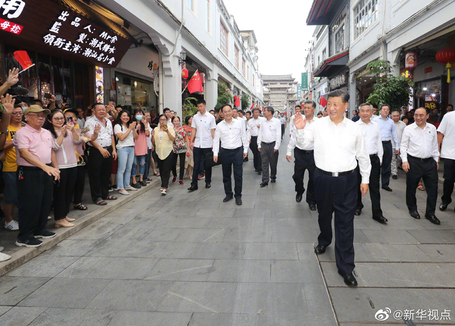 习近平总书记12日赴广东考察调研。当天下午,他首先考察了潮州市广济桥、广济楼、牌坊街,察看文物修复?;?、非遗文化传承、文旅资源开发等情况。随后,习近平前往潮州三环(集团)股份有限公司,了解企业自主创新和生产经营情况。(文字记者:张晓松、朱基钗 摄影记者:鞠鹏、王晔、李响)