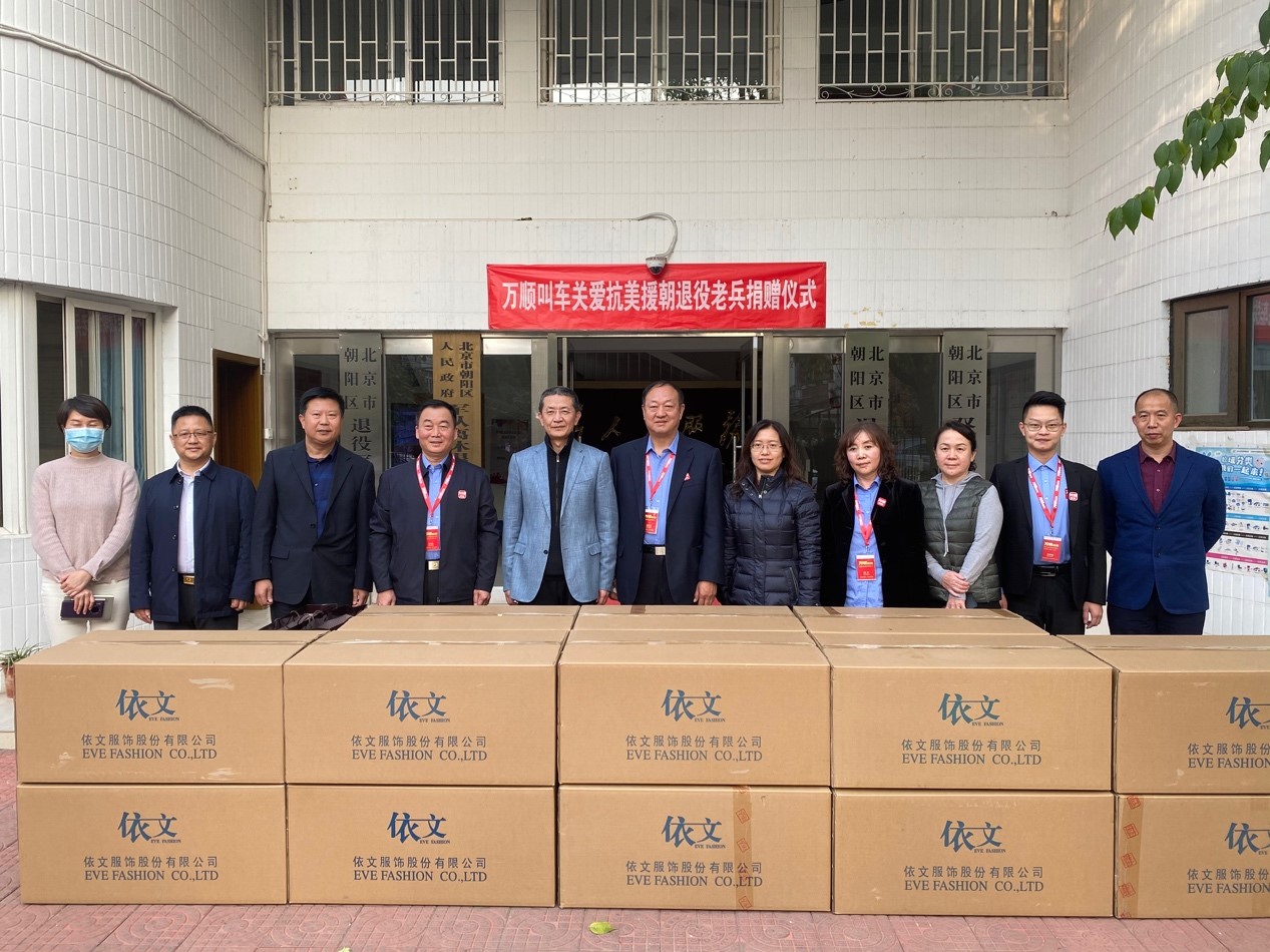当天下午,朝阳区退役军人事务局门口热闹非凡,由万顺叫车公司捐赠的一箱又一箱厚实保暖的羽绒服运达。这些高品质“暖军衣”将全部送给朝阳区里参加过抗美援朝的退役老战士。捐赠仪式上,与会人员在朝阳区退役军人事务局门口合影留念。