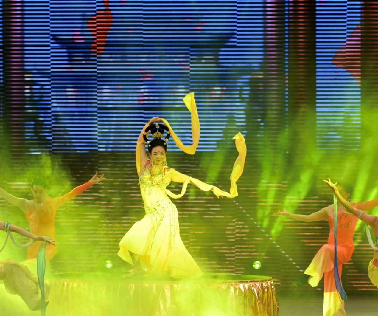 正乾坤文化教育科技有限公司负责人杨燕女士以灵魂舞者的身份出席,在整场音乐会中演绎了一曲美轮美奂的大梦敦煌飞天舞蹈《千年的祈祷》。