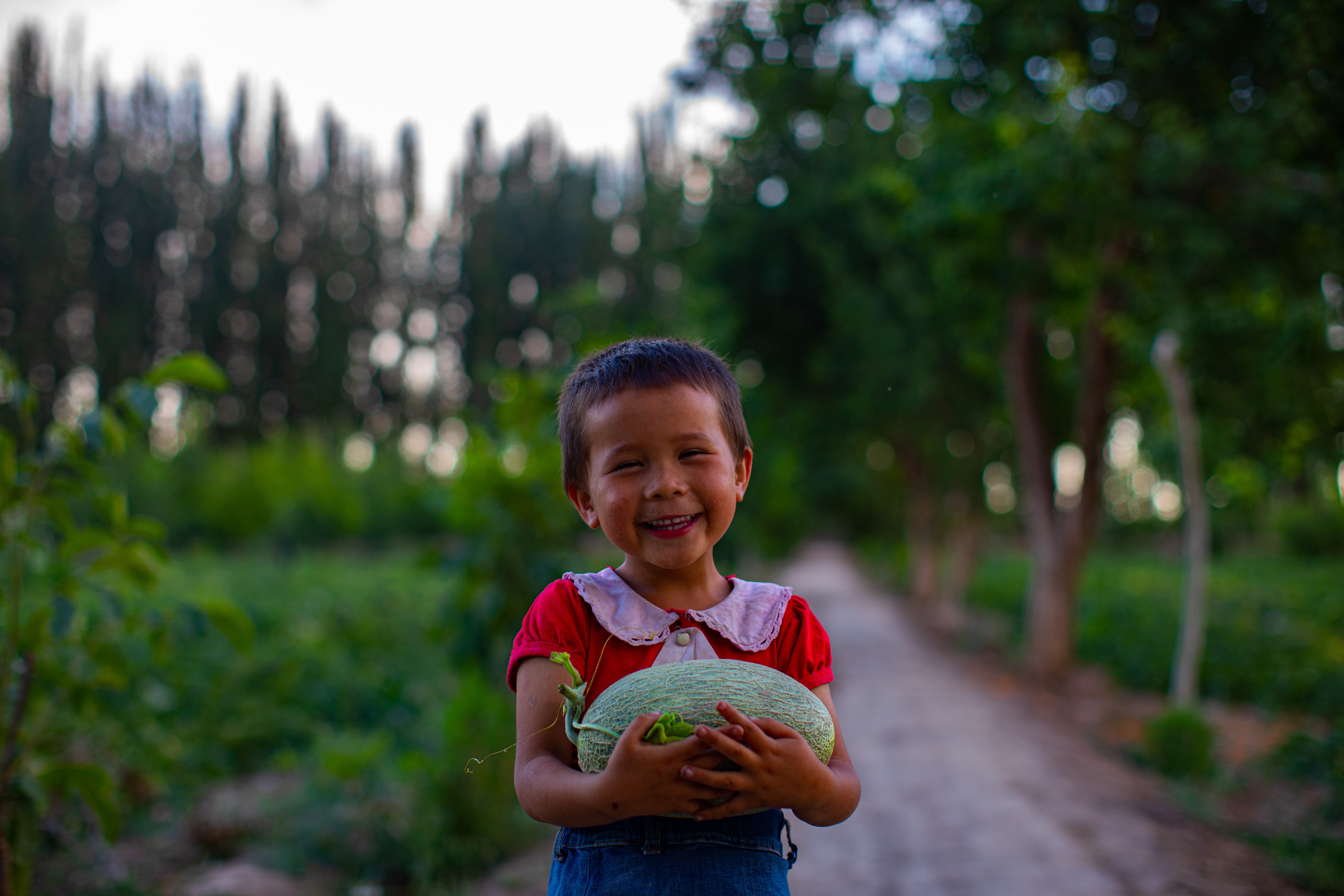 新疆巴楚,瓜农的女儿笑逐颜开。