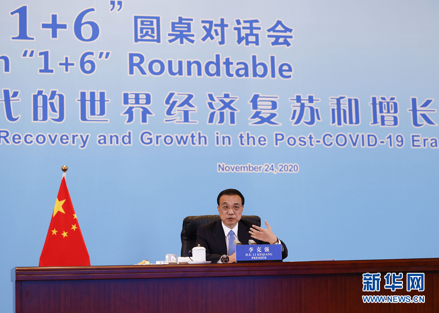 新华社北京11月24日电(记者郑明达)国务院总理李克强11月24日晚在钓鱼台国宾馆同世界银行行长马尔帕斯、国际货币基金组织总裁格奥尔基耶娃、世界贸易组织副总干事沃尔夫、国际劳工组织总干事赖德、经济合作与发展组织秘书长古里亚和金融稳定理事会主席夸尔斯举行第五次“1+6”圆桌对话会?;嵋橐允悠捣绞骄傩校啤按俳笠咔槭贝氖澜缇酶此蘸驮龀ぁ敝魈?,就世界经济形势、中国经济形势以及后疫情全球经济治理等议题深入交流。