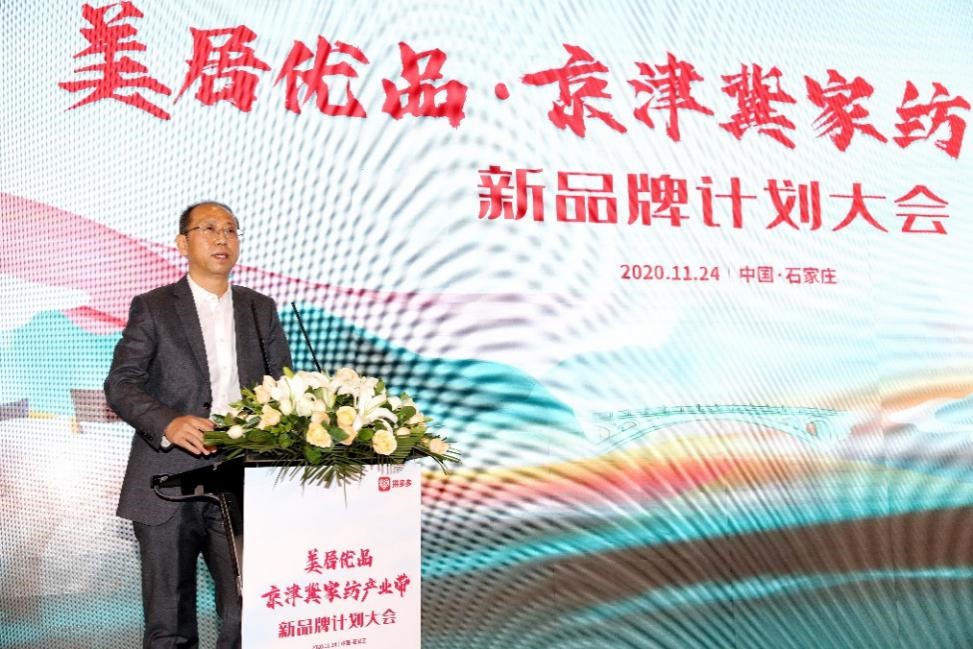 ▲11月24日,河北省商务厅副厅长卢建在京津冀家纺产业带新品牌计划大会上表示,希望拼多多帮助河北企业拼质量、拼物美价廉、拼品牌。(摄影:杨子)