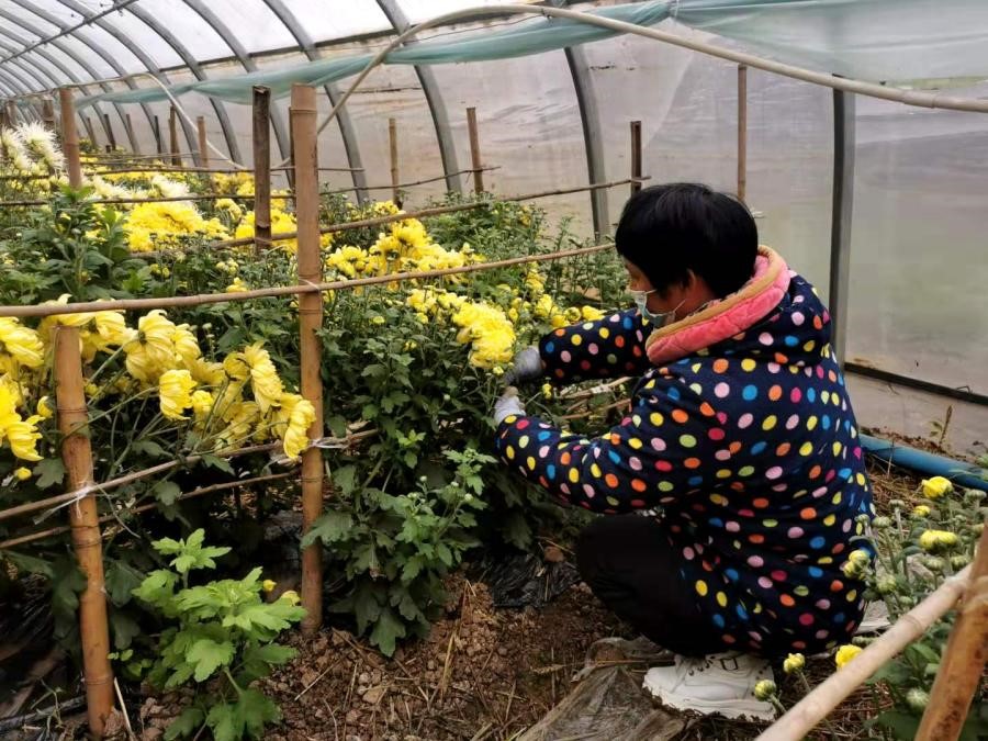 而郭美丽的工作是采摘、整理、包装食用菊花,每月能有2000元收入。
