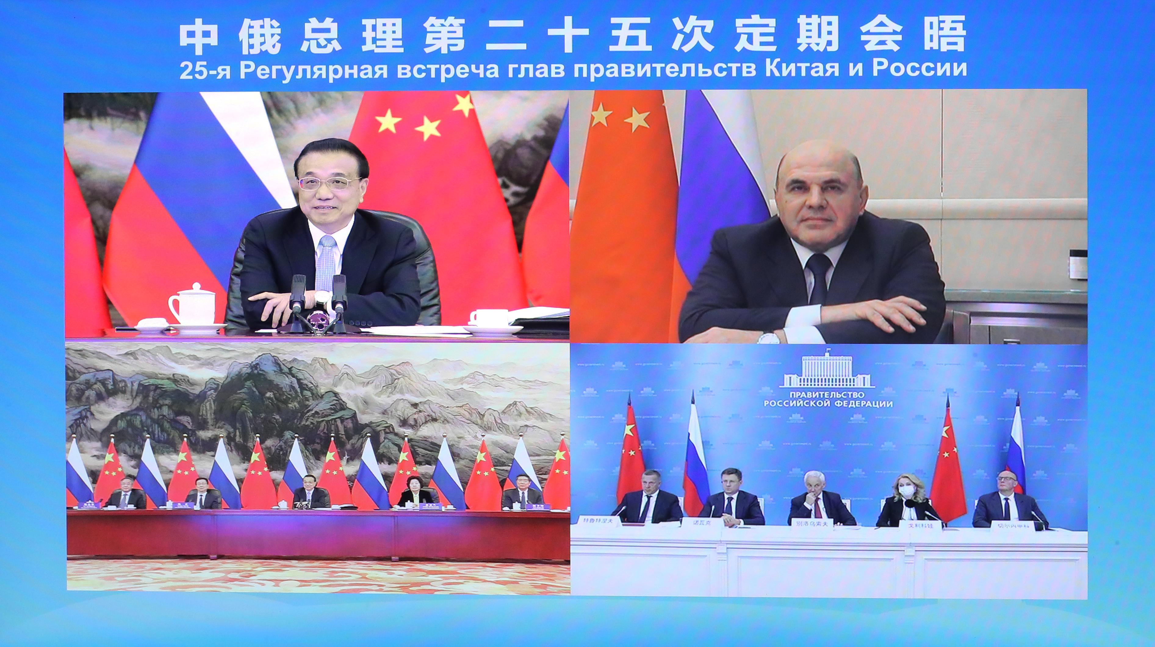 李克强表示,中俄互为最大邻国,始终相互尊重,奉行睦邻友好政策,致力于实现互利共赢。面对新冠肺炎疫情冲击,中俄携手合作,抗击疫情,推动经济社会发展。今年习近平主席同普京总统多次通话,引领两国关系持续高水平发展。在世界经济严重萎缩、全球贸易投资低迷背景下,两国合作的脚步不仅没有放缓,很多领域还有新的进展,贸易紧密度进一步提升,跨境电商等新业态蓬勃发展,能源等战略大项目稳步推进,远东及地方合作取得新成果,充分体现了双方合作互补性强、潜力巨大。中方愿同俄方一道,更好总结合作成果和经验,为中俄新时代全面战略协作伙伴关系持续健康发展注入新动力。
