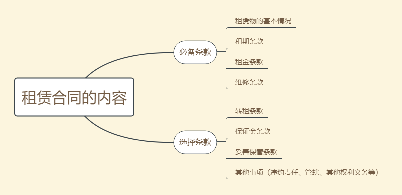 民法典对于租赁合同的内容作了具体的指引和规定,有助于指导当事人完善合同内容,推进合同的规范履行。民法典第704条规定,租赁合同的内容一般包括租赁物的名称、数量、用途、租赁期限、租金及其支付期限和方式、租赁物维修等条款。这些内容应该在租赁合同中得到体现;同时,当事人也可以根据情况自行约定一些内容。因此,可以将租赁合同的内容分为必备条款和选择条款两类。