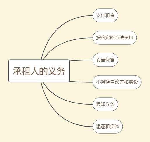 5.通知义务。在租赁关系存续期间,出现租赁物有修理、防止危害的必要,或其他依诚实信用原则应该通知的事由,承租人应及时通知处租人。