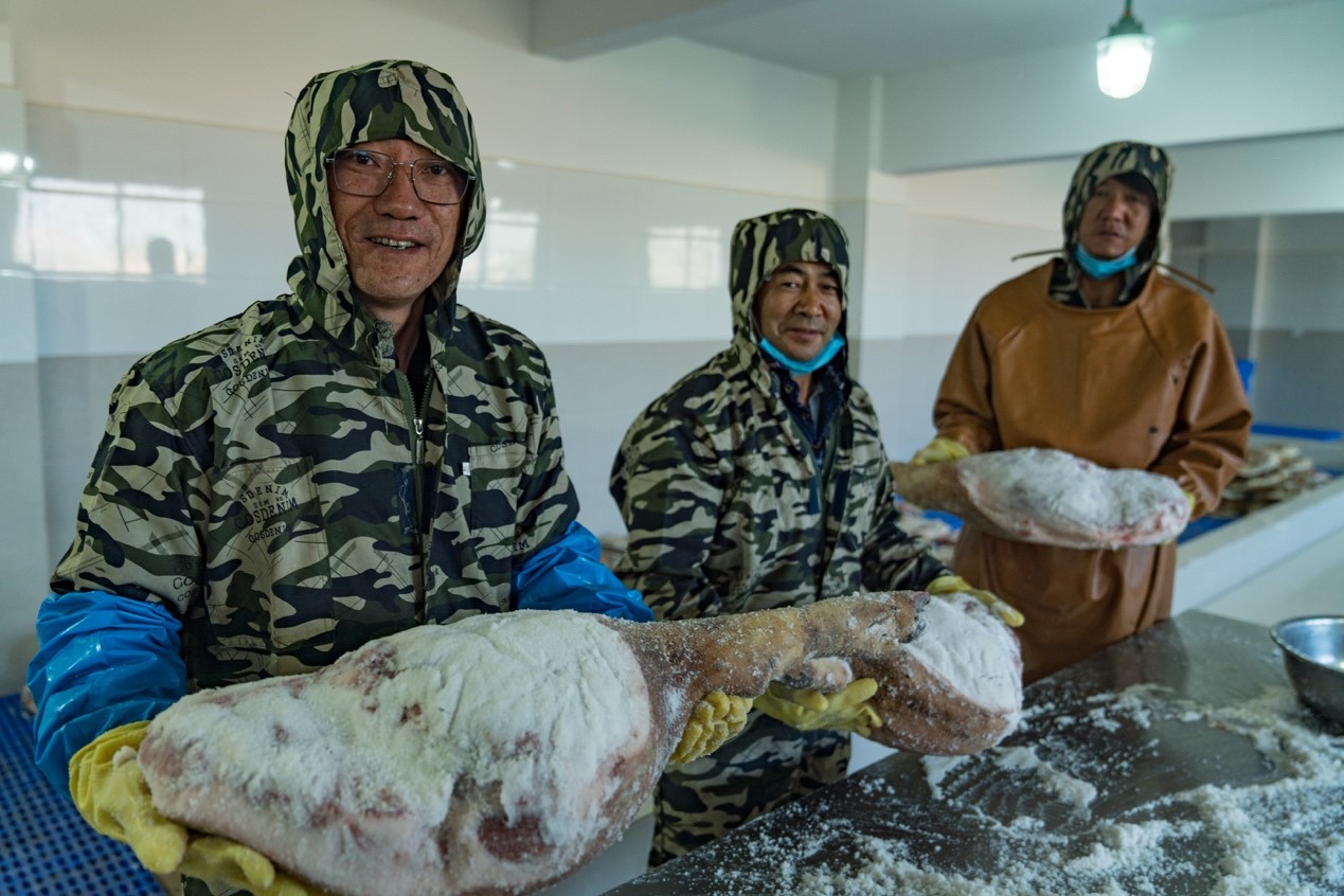 看准了家乡得天独厚的发展条件,2013年,徐琨斌放弃了昆明铁路局火车司机的“体制内身份”,回到家乡诺邓古村的山沟沟里开办火腿加工厂,成为了一名“新农人”。
