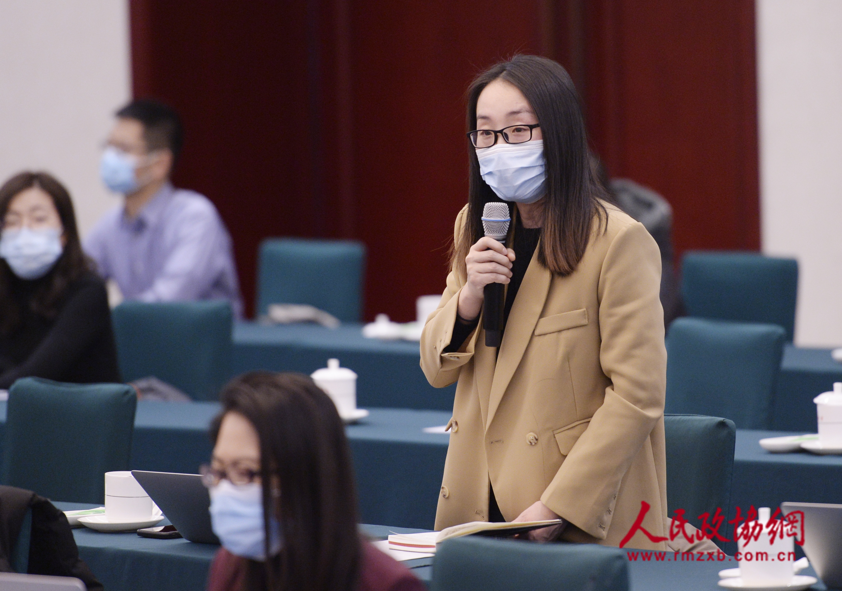 全国政协专门委员会首场媒体见面会13日上午在全国政协机关举行,人民政协报记者包松娅在会上提问。 人民政协报·人民政协网记者 贾宁 摄