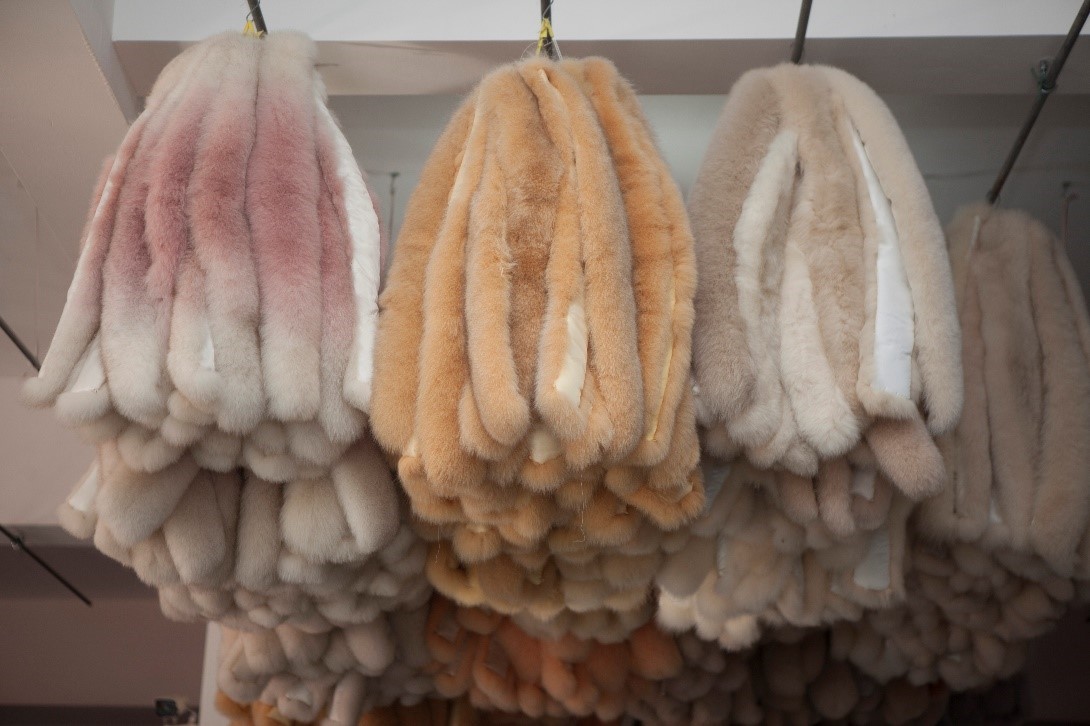 ▲一条真毛领成本70-100元,人工饲养的动物毛领色泽鲜亮、手感柔顺,今年很受欢迎。 (顾映雪 摄)