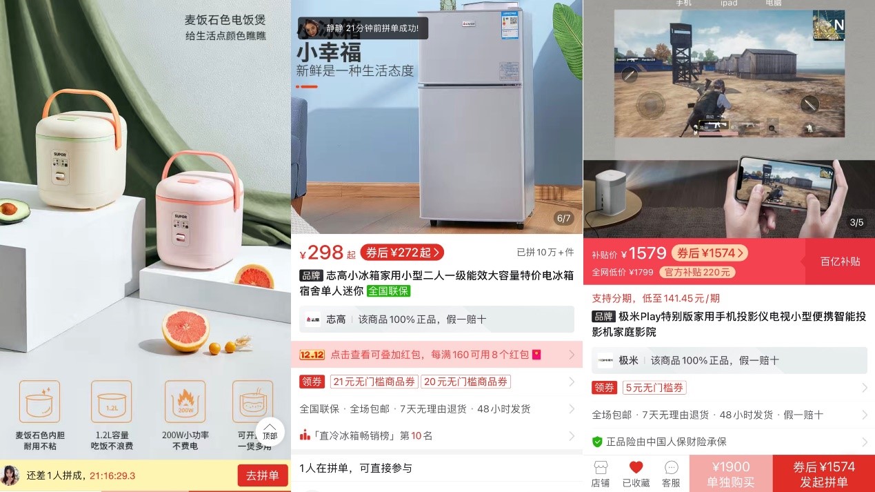 ▲拼多多“一人用”电器商品需求上涨,受年轻用户热捧