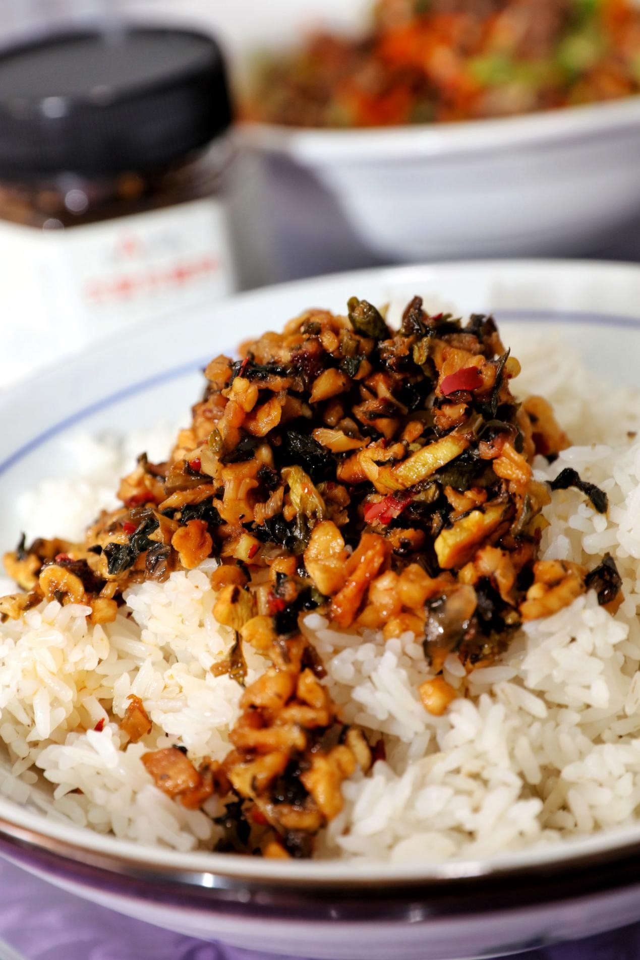 ▲湖南外婆菜咸香鲜辣,是当地知名的风味美食,不论是拌饭佐餐,还是炒菜调味,味道都极为鲜美。(安舜 摄)