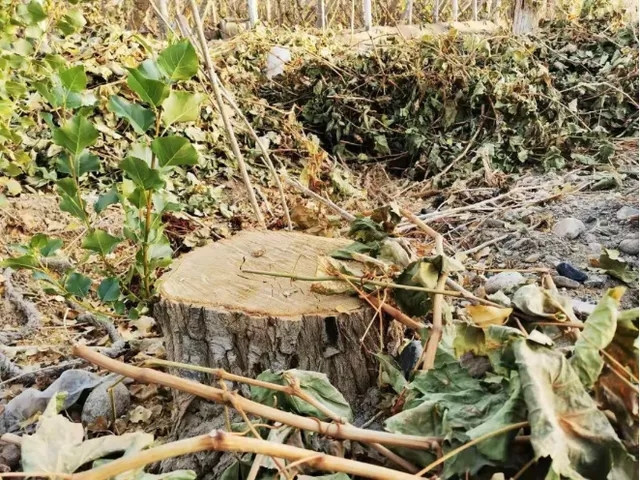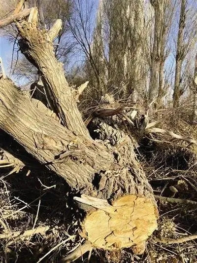 △防护林被砍伐后残留的树桩(图源:经济参考报)