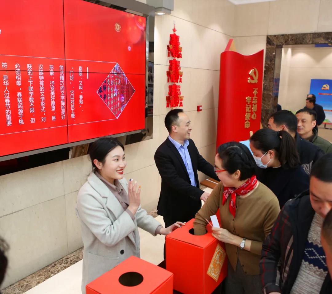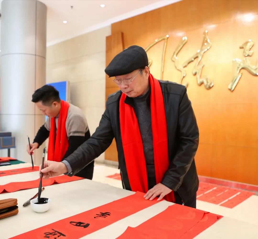 畅叙会前,市政协机关在一楼大厅组织了丰富多彩的迎新春活动。邀请我市书法艺术家田立杰、谢甲随到场为机关干部书赠春联?;疃殖≈较闼囊?、墨韵流转,“国泰民安辞鼠岁,家和业旺接牛年”……一幅幅喜庆春联,或以铿锵的行楷,或以飘逸的草书,表达了迎春纳福、平安祥瑞的美好愿望,引来同志们的阵阵喝彩。