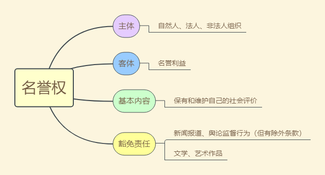 法人的名誉权内容与公民的名誉权相比,由于其不具有如公民一般的情感,所以其内容有所狭窄,主要包括: