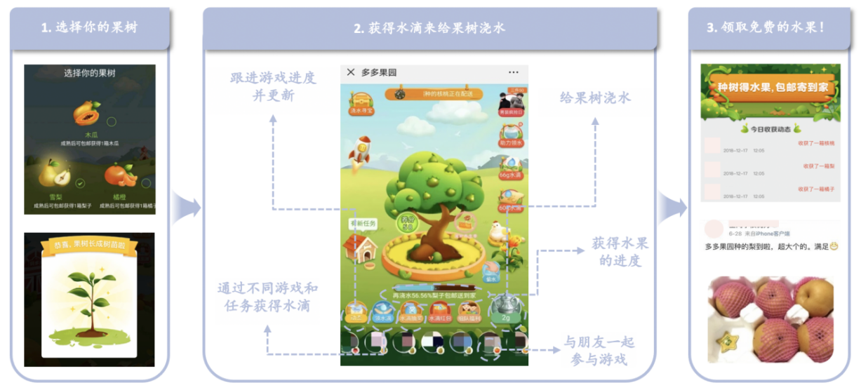 ▲“多多果园”成功将游戏娱乐与扶贫助农相结合,用户通过社交互动的方式培育虚拟果树,可以免费收到一份由拼多多送出的扶贫助农水果。