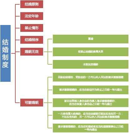 2、 “结婚”一章包含了结婚条件、禁止结婚的情形、结婚程序以及无效和可撤销婚姻的规定。比较之前的婚姻法,民法典结婚制度中的禁止结婚情形减少了,重大疾病不再作为不能结婚的条件,但有重大疾病而不告知对方的行为则会成为可撤销婚姻的情形之一。