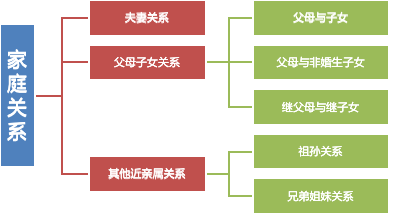 3、 “家庭关系”一章分为两节,共21条。第1节为夫妻关系,对夫妻地位、夫妻姓名权、人身自由权、对子女的权利义务、相互抚养义务、日常家事代理权、相互遗产继承权,以及夫妻共同财产、个人财产、共同债务的界定等作了规定;第2节为父母子女关系和其他近亲属关系,对父母与子女之间的权利和义务、非婚生子女、继父母与继子女、亲子关系异议之诉,以及祖父母、外祖父母与孙子女、外孙子女之间抚养和赡养义务,兄弟姐妹间抚养义务等作了规定。