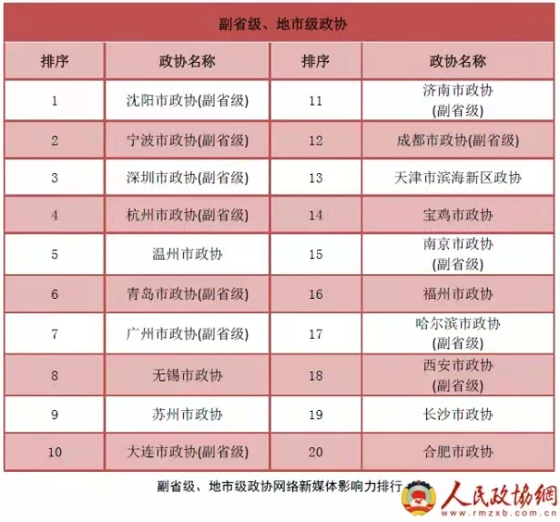 政协新媒体年度最具影响力奖TOP10(副省级、地市级)