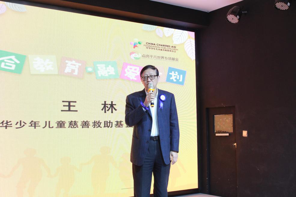中华少年儿童慈善救助基金会理事长王林先生在致辞中表示,中华儿童慈善救助基金会自成立以来,一直坚持“以慈为怀,从善如流,呵护未来,促进和谐”的理念,长期以来对困难少年儿童实施生存、医疗、心理、技能、成长救助以及教育助学等。他表示,点亮平凡世界专项基金“融爱计划”公益项目的启动,让中华儿童慈善救助基金会在特殊儿童的救助方面可以做更多地工作,中华儿童慈善救助基金会会全力支持这个项目,也呼吁社会各界积极参与,让更多特殊的孩子在社会中正常生活、学习,获得快乐和成功。