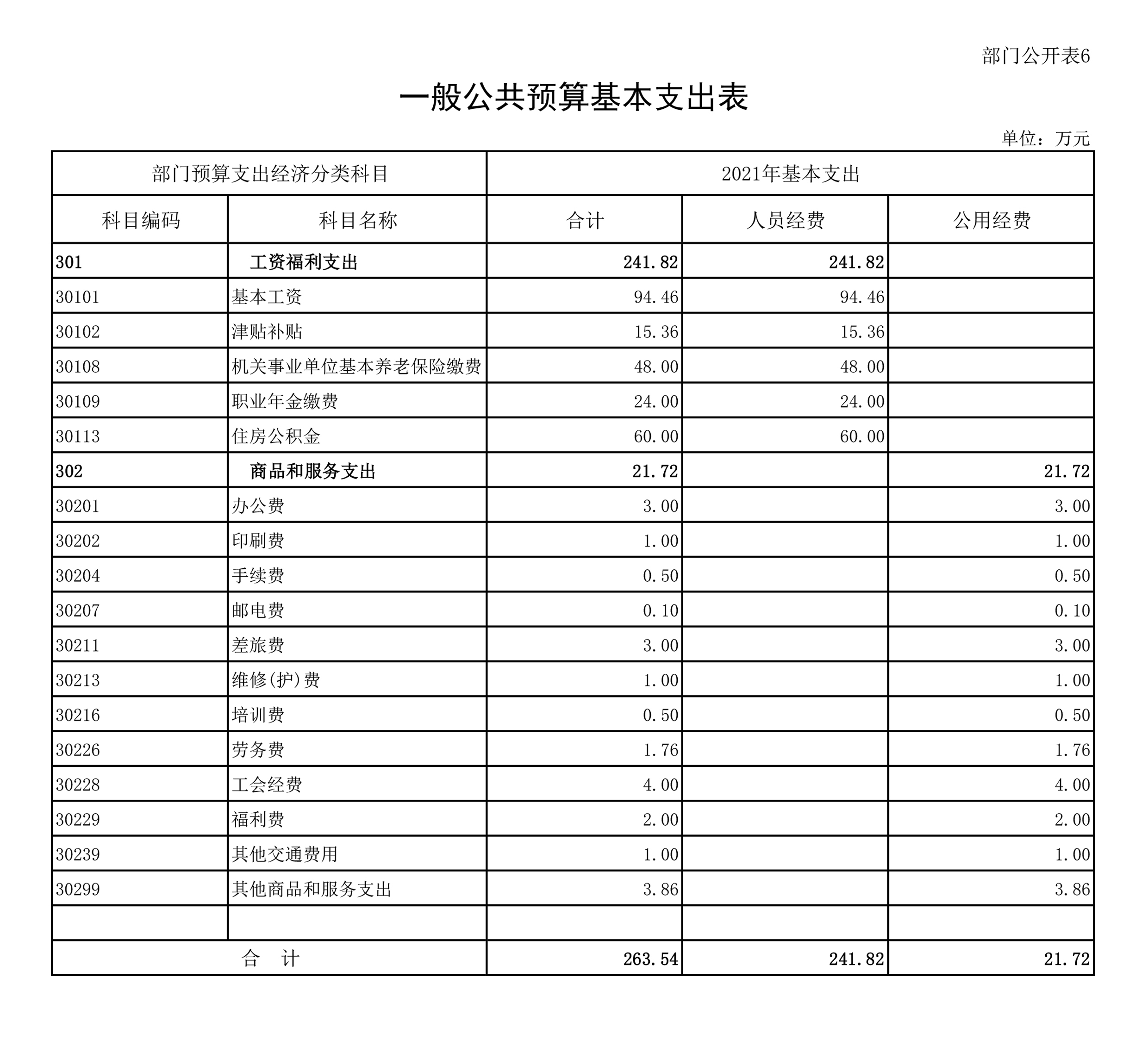 第二部分 2021年部门预算公开表