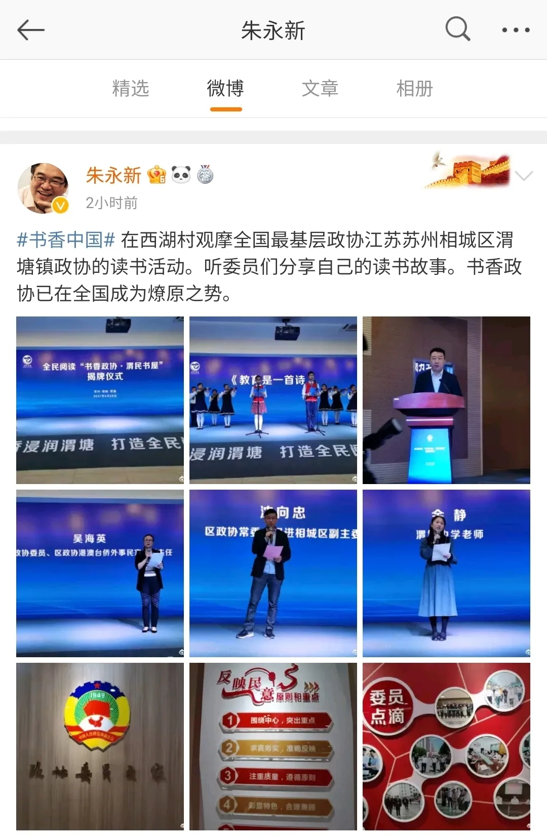 值得一提的是,同时还是网络“大V”的朱永新在个人微博上第一时间点赞相城政协,点赞渭民书屋。
