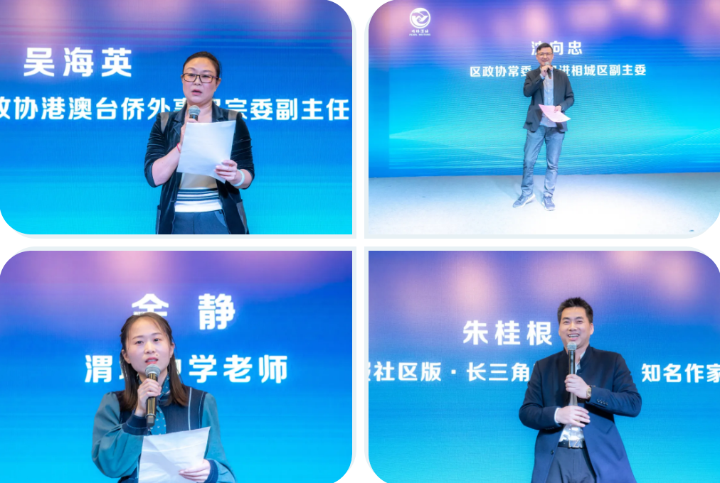 阅读分享环节,区政协委员、区政协港澳台侨外事民宗委副主任吴海英,区政协常委、刘珏美术馆馆长、民进相城区副主委沈向忠,渭塘中学老师余静,新民晚报社区版·长三角特刊总监、知名作家朱桂根分别作读书分享。