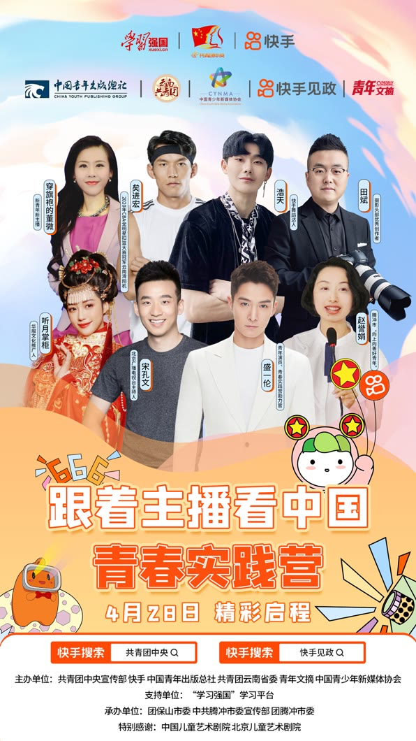 2021年是中国共产党百年华诞,在这献礼之年,让广大青少年了解革命年代的辉煌历史,将革命精神代代传递下去,显得尤为重要。4月28日-30日期间,共青团中央宣传部联合快手、中国青少年新媒体协会、中国青年出版总社、共青团云南省委等机构,开展“跟着主播看中国”大型国情采风五四“青春实践营”活动,通过打造首个主播在全国范围进行特殊巡回走访直播的正能量真人秀项目,引导青少年奋进新时代,启航新征程。