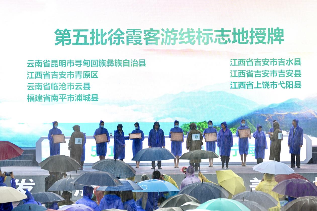 19日上午在宁海庆祝“中国旅游日”2021 年浙江主会场、“最美风景在路上” 全国夏季自驾游推广季启动仪式暨第十九届徐霞客开游节开幕式上,中国徐霞客研究会副会长陈庆江、江西省政协文化文史和学习委员会专职副主任傅兆良等受发起单位邀约向申报地地方政府颁发了证书。云南省寻甸县政协主席肖正坤、江西省吉水县政府副县长张学伟、云南省云县政协主席、云县徐霞客游线标志地论证申报工作领导小组组长钟汝菊、福建省浦城县政协副主席刘军、江西省吉安县政协副主席罗晓忠、江西省吉安市青原区文广新旅局局长 龙艳华、弋阳县文广新旅局局长吴升林上台领证。多个地方政府领导表示,将继续通过积极而具有创造性的工作推动徐霞客游线资源的梳理、研究、?;ず屠?。