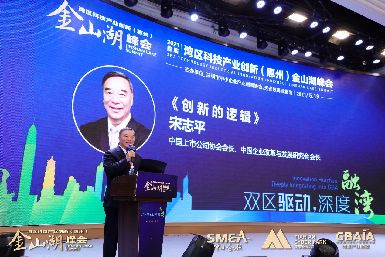 主题演讲环节,中国上市公司协会会长、中国企业改革与发展研究会会长宋志平在 《创新的逻辑》的主题演讲中深度剖析了创新的要素与依托,他表示,创新是寻找机遇的过程,所以创新要有效益,要有目的。其次创新还需要有所依托,才能实现,一方面要依靠比较活跃的、开放的文化环境,另一方面是资本的支持,资本是创新的杠杆,没有资本创新变不成创业。双区驱动,深度融湾,对于惠州而言,不仅技术融入湾区,创新融入湾区,产业融入湾区,最重要的是资本融入湾区,要从香港资本市场,从深圳资本市场引用大量的资本进入惠州,助力惠州的发展。