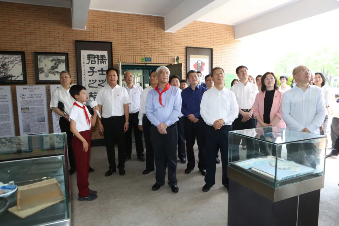 在嘉兴期间,丁仲礼一行还参观了沈钧儒纪念馆,视察了钧儒小学。重温了民盟与中国共产党风雨同舟、肝胆相照的奋斗历史,引导全盟进一步弘扬民盟光荣传统,坚守合作初心。在钧儒小学,丁仲礼勉励同学们发扬红船精神,传承弘扬沈老爱国、为民的高尚品德,将钧儒精神发扬光大。