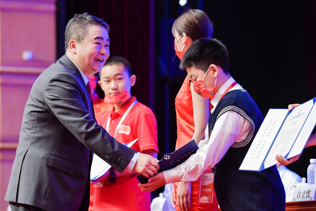 大会为出席开幕会的院士及科技专家颁发了“科技自立自强贡献致敬”纪念证书,还为深圳市南山外国语学校(集团)文华学校、“中国少年科学院小院士”荣誉称号获得者王有浩同学,上海市静安区同济大学附属七一中学、中国(上海)国际发明创新展览会金奖获得者谢礼扬同学,华东师范大学硕士、第九届全国大学生电子商务“创新、创意及创业”挑战赛三等奖获得者杨阳同学颁发“科学探索精神”鼓励证书。