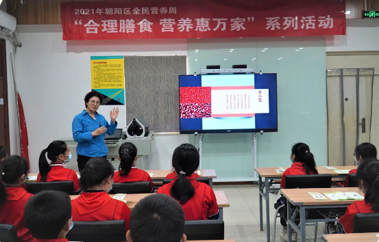 将中医药文化的“种子”在孩子心中播种5月20日是中国学生营养日,2021年北京市朝阳区“营”在校园5·20学生营养日健康教育活动如火如荼地开展。此前的5月13日,在一次面向全区公办中小学、民办中小学、幼儿园等700多家单位的培训(视频)会上,全国政协委员、中国中医科学院广安门医院食疗营养专家王宜,以“中医药文化进校园上餐桌”讲授了她原创的《本草谣·五谷童谣》,为餐桌上的五谷赋予了中医药文化内涵。参与培训的人员主要是学校负责人、校医、食品安全管理员和食堂厨师长等,共有2000余人。他们将面向全区中小学幼儿园21万学生开展“中医药文化进校园上餐桌”的宣教活动。