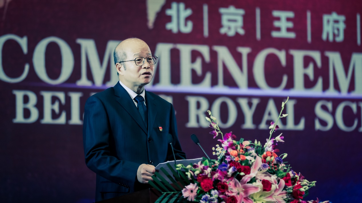 课程教材研究所副所长、教育部基础教育课程教材发展中心副主任莫景祺出席活动并致辞。莫景祺先生向全体王府毕业生们表示祝贺,他强调,作为一所知名的国际学校,北京王府学校25年来走在教育改革的前沿,为中国基础教育国际化积累了宝贵经验并提供了有效的参考模式;作为课改实验基地,王府学校为我国课程改革和践行优质教育资源共享作出了积极贡献。他期待全体王府学子能利用学贯中西的优势讲好中国故事,为促进中外文化交流、实现民族复兴贡献力量。