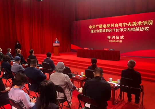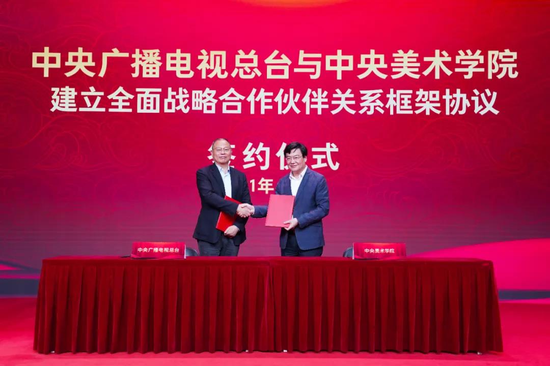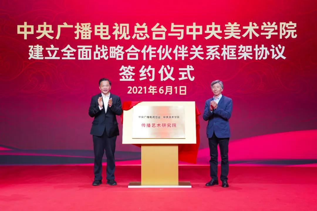 6月1日,中央广播电视总台与中央美术学院签订全面战略合作伙伴关系框架协议。中宣部副部长、中央广播电视总台台长兼总编辑慎海雄,中央美术学院院长、中国美术家协会主席范迪安出席并致辞,并共同为中央广播电视总台—中央美术学院传播艺术研究院揭牌。中央美术学院党委书记高洪和中央广播电视总台编务会议成员薛继军代表双方签约。