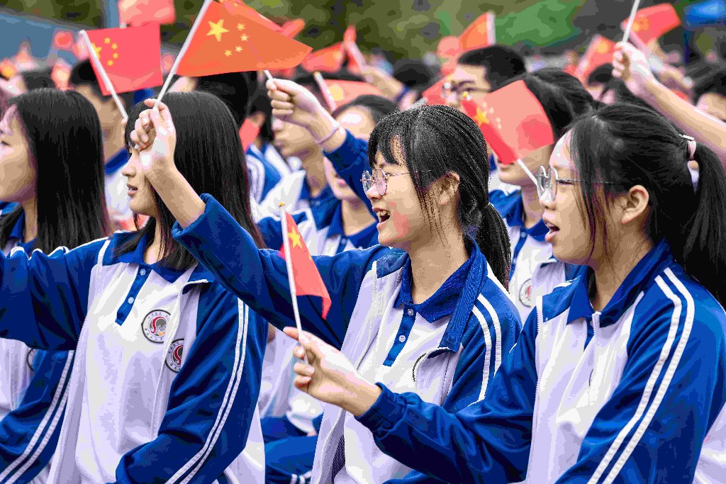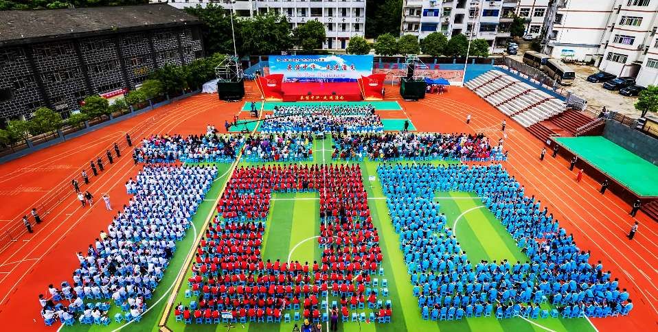 白色、红色、蓝色,身着各色服装的2300名潼南归侨侨眷、当地群众和学生代表,正整齐划一地端坐在操场上,热情洋溢的笑脸,恰似那抹亮眼的晨光。