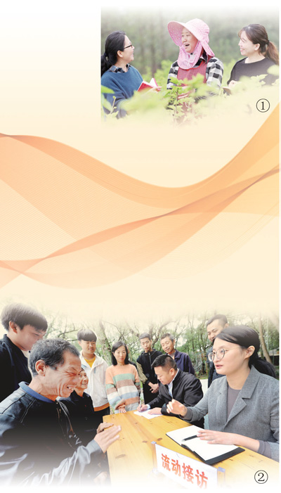 | 图①:江西上饶市旅游集团干部到当地景区对旅客现场接访。 卓忠伟摄 图②:浙江德清县信访局工作人员来到街道面向群众流动接访。 谢尚国摄 |