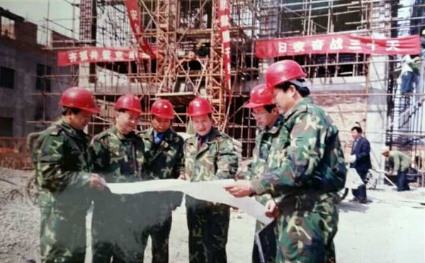 2005年11月,陈茂春带领党员干部、复退军人在河北兴华钢铁技改项目现场。(受访人供图)