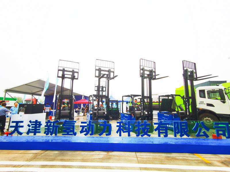 目前天津市氢能产业示范区已在车载动力技术和分布式发电/热电联供技术两大燃料电池技术领域取得了一系列突破,众多成果及产品均为国内首次发布亮相,主要包括氢燃料电池叉车场景示范运营及其配套设施、氢燃料电池环卫车及渣土车示范运营以及固体氧化物燃料电池(SOFC)热电联供系统,重点展示了国内首批氢燃料电池叉车、国内首套固体储氢燃料电池发动机系统及国内首套燃料电池叉车配套加氢装置,并在国内首次公开SOFC热电联供系统内部构造,以及国内首批投入示范运营的燃料电池环卫车,并联合天津荣程钢铁集团共同探索钢铁企业“双碳”解决方案,示范运营氢燃料电池重卡车及渣土车。