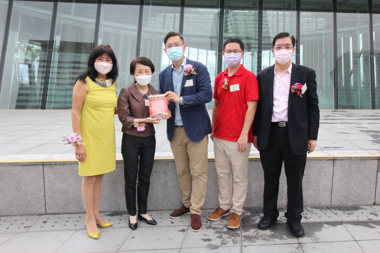 活动主办单位之一香港青年爱乐乐团慈善基金会创会主席赵曾学韫(左四)和四位副主席及顾问出席典礼仪式