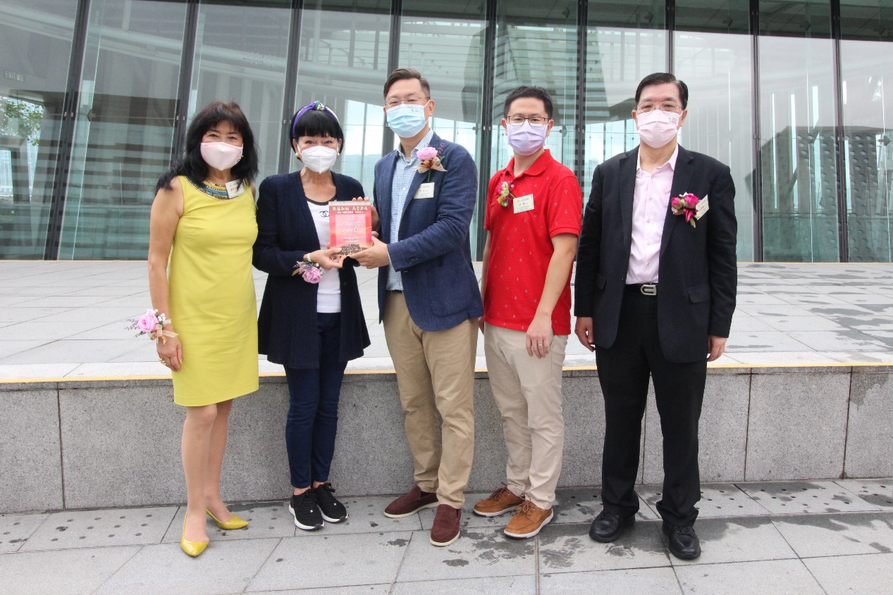 活动组委会代表致送纪念品给余陈纫君女士(左二),以感谢她全力促成在香港国际金融中心的快闪演出活动
