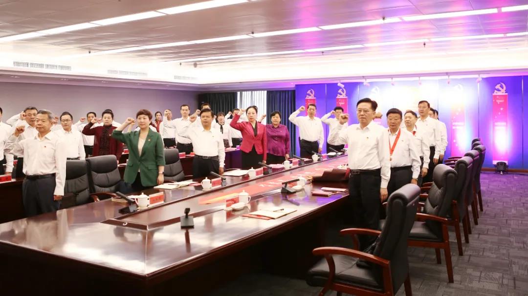 心中有信仰、脚下有力量,与会党员面向党旗,举起右拳,用铮铮誓言吹响奋进号角,用实际行动为党旗增辉。